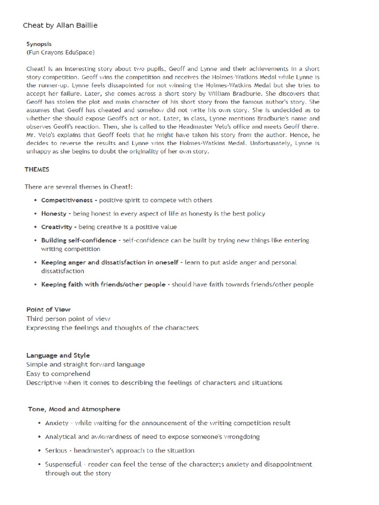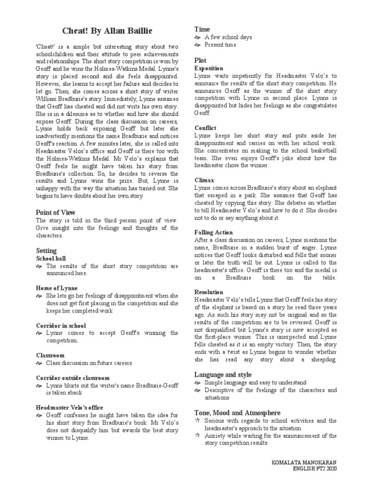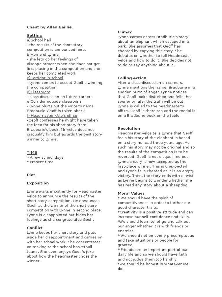 This is a short presentation of a short story written by allan baillie. Immediately, lynne assumes that geoff has cheated and did not write his own story. Prescribed for schools particularly the short story cheat by allan baillie. Allan baillie was born on january 29, 1943, in scotland. He has worked as a journalist and published books in fourteen countries.