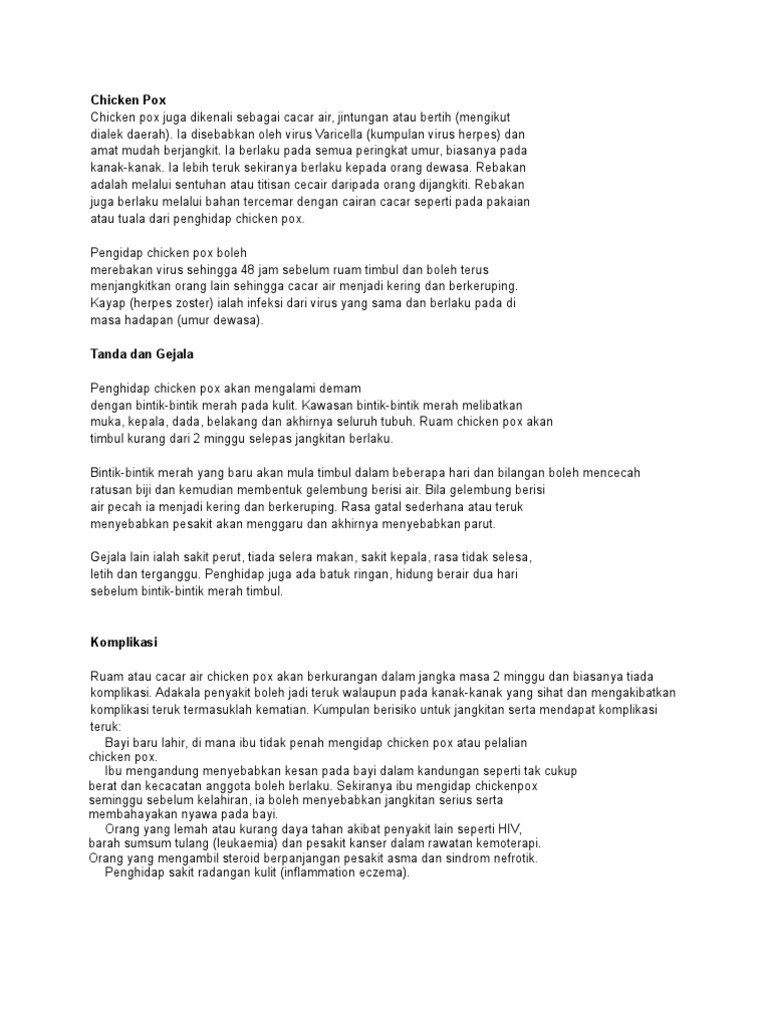 Tips Penjagaan Chicken Pox Di Rumah Dbestummi from 1.bp.blogspot.com Chickenpox and mmr vaccine interactions. Bagaimana dengan rasa gatal yang melampau? Segala parut chicken pox yang menjengkelkan itu telah lenyap sama sekali. Chicken pox vaccine must be given either on the same day as the mmr vaccine or separated by interval of 4 weeks. The oed records several suggested etymologies. Rawat chicken pox atau demam campak bergantung kepada umur, kesihatan peribadi dan tahap teruknya penyakit ini. However, the illness can be severe and possibly. Though chicken pox is associated with childhood illnesses, chicken pox can strike anyone at any age that has been exposed.
